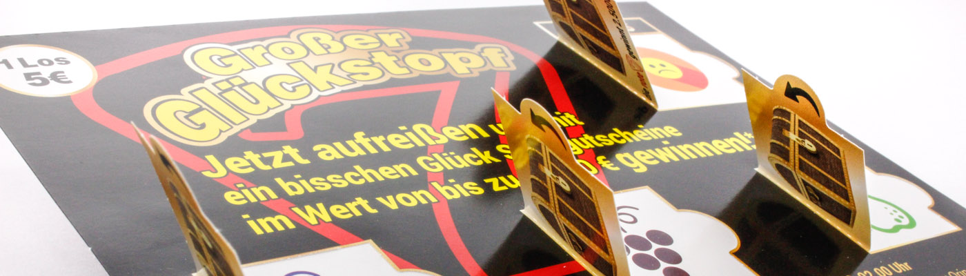 - Bedruckte Aufreißlose, evtl. sogar figürlich gestanzt?