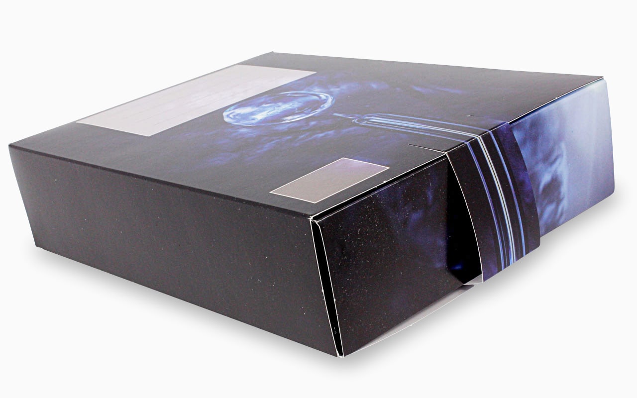 Nachdem Aufklappen präsentieren sich die innenliegenden Produkte in dem eigens dafür gestanzten Kartoneinsatz. Die Größe der Schiebeschachtel, die Ausführung im Inneren, sowie die komplette Bedruckung und Veredelung kann frei gewählt werden und sollte auf Ihre Produkte abgestimmt sein.