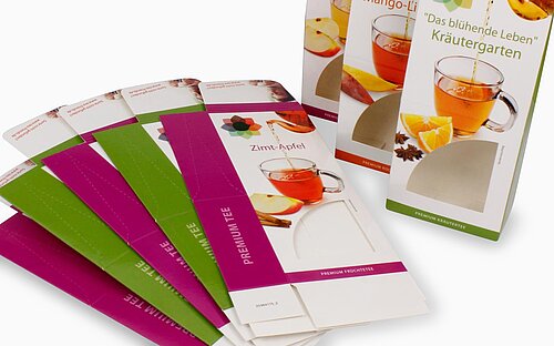 Um die Qualität des Tees zu wahren, ist eine lebensmittelrechtlich unbedenkliche Faltschachtel erforderlich. Tee wird in den unterschiedlichsten Weisen verkauft, entweder lose oder im Einzelaufgussbeutel, dem sogenannten Teebeutel. Sie benötigen daher entweder eine Primär- oder Sekundärverpackung.